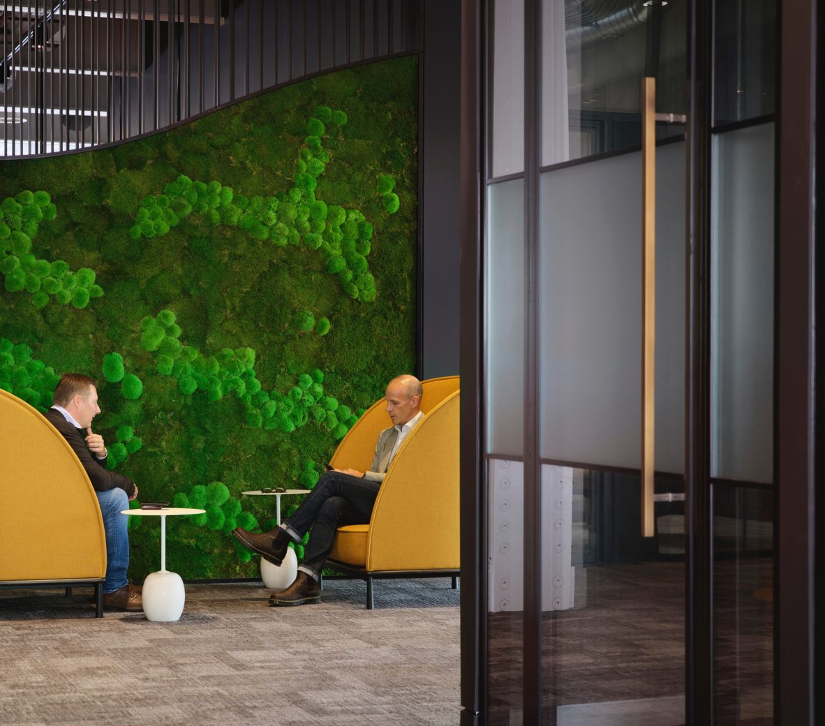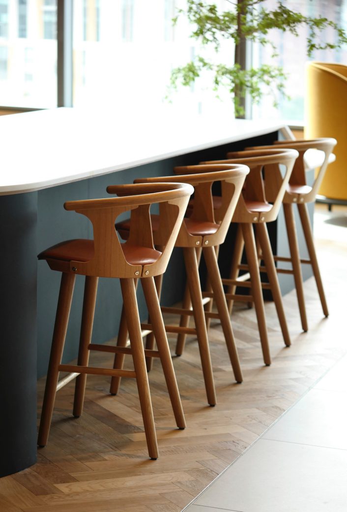 “We worked with the building – the internal architecture and the built elements are very masculine and angular,” says Chris Gibbs, Associate Interior Designer at BDP. “Manchester is surrounded by some of the most beautiful landscapes in the UK, and we’ve brought that into the space – very literally through the biophilia, but also in the FF&E, which has a soft, curved feel to it and creates a juxtaposition of the industrial and natural. There’s also a contrast between light and dark – a theme of black stained timber and very light oak running throughout the scheme.”