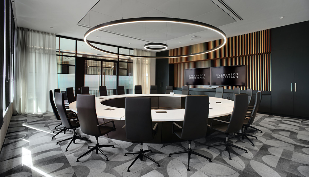 Milliken showroom, 5 Berry Street, London EC1V 0AAA varied mix of work settings fill the three floors of Eversheds Sutherland’s new office within Manchester’s Two New Bailey – with formal and informal, individual and collaborative spaces ranging from more relaxed, casual, softer seating to sit-stand workstations and plenty of private meeting rooms.