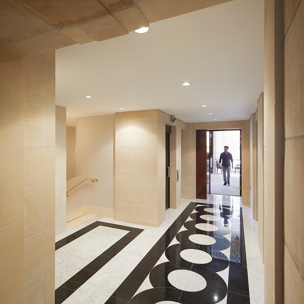 Wright & Wright utilised existing lightwells to draw daylight deep into the subterranean interiors, as part of a passive environmental strategy that harnesses the spaces’ position below ground level to retain heat in winter and avoid summer overheating. Sustainability has been key to the redesign; the practice navigated the most demanding heritage regulations to address the building’s environmental performance, involving an overhaul of the building envelope that has seen the first use of double glazing to date in a Grade I listed setting.