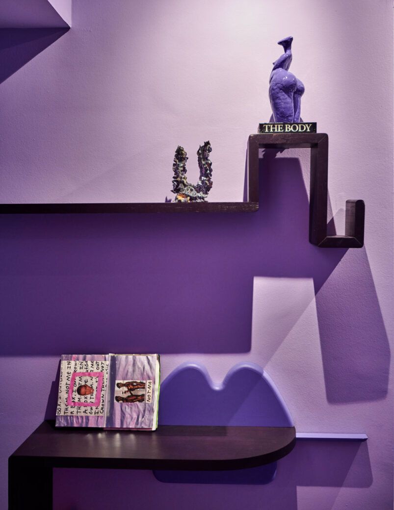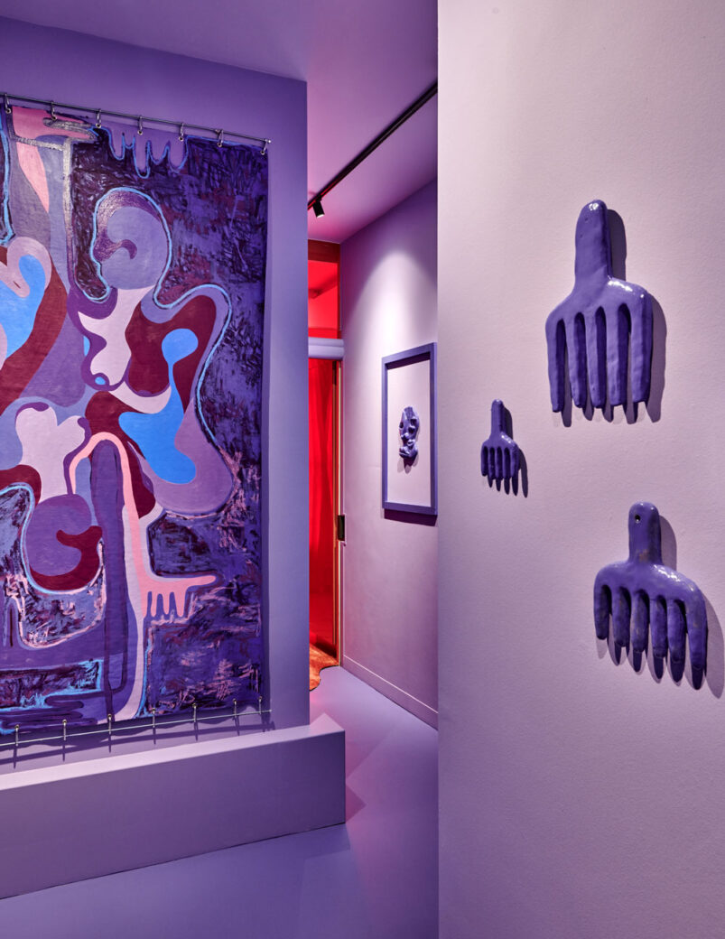 Eclectic at heart, spaces within the suite are given abstract names, with the purple entrance hallway becoming ‘The Mirror of the Soul’ and the hybrid living area and bedroom – set apart by its monochromatic red scheme – referred to as ‘The Playground of Expressions’. Paired with furniture and décor in deliberately soft, voluptuous shapes (including figurines and wall murals of the female form) this all-red palette – according to the design duo – intends to evoke the ‘safety and comfort of the womb’. “Working with D/DOCK was one of our most precious experiences,” said Sisters Janssen of the design process behind their eponymous suite. “Nothing was off limits; they made our dream come true.”