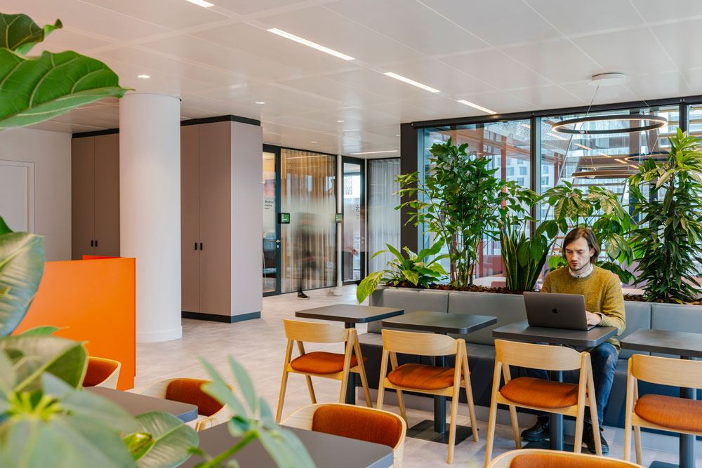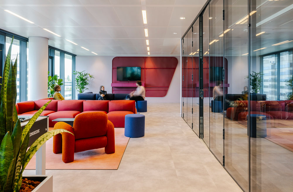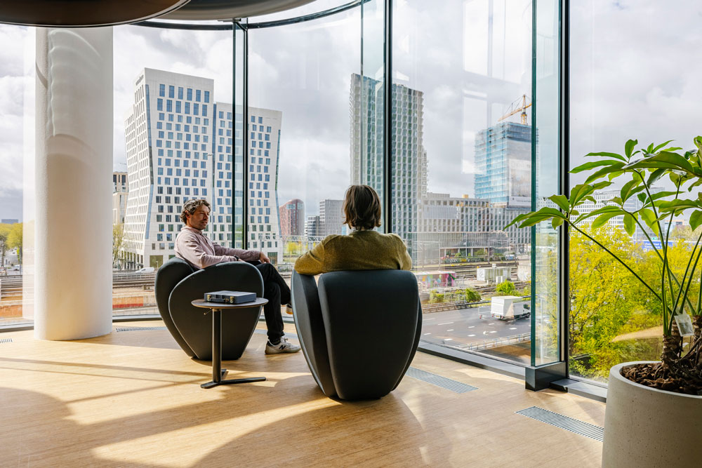 Despite the swift delivery of the project, D/DOCK made sure to incorporate its signature focus on sustainability and conscious consumption into the design concept from the beginning. In partnership with circular furniture specialists Furnify (also local to Amsterdam), the studio implemented an environmentally responsible approach by repurposing and upcycling furniture from multiple sources, underscoring both companies’ strong commitment to creating sustainable workspaces wherever possible.