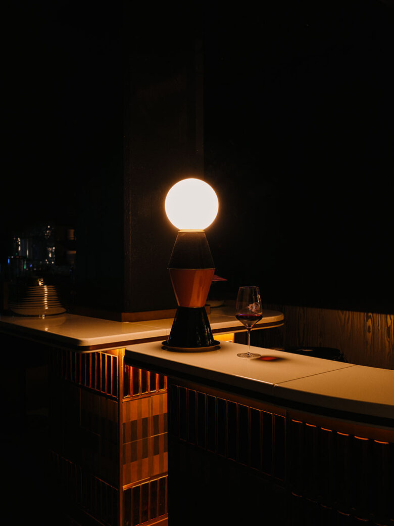 The Home Bar & Lounge offers guests a curated list of classic cocktails, imaginative inventions and fine wines. Here, a lava-stone bar is woven between the structure’s concrete skeleton, supported by a frontage of alternating ceramic tiles and metallic finishes. On the ground floor, the restaurant LouLou French Grill & Raw Bar Zürich mixes French culinary traditions with global flavours, prioritising local ingredients from France and Switzerland. Soft seating in shades of teal and plum is offset by orange-gold reflective elements, making for a daring yet opulent dining option.