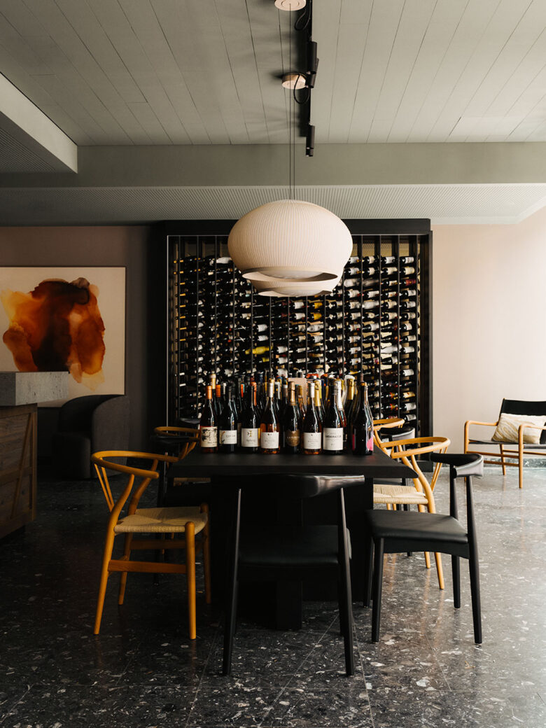 The reception desk stands out with its combination of stone, timber, glass blocks and integrated planting. Nearby, a cluster of low-rise club-style sofas surround a floating fireplace, inviting relaxation and conversation in a setting not dissimilar to that of the time-honoured Dadaist hangout Cabaret Voltaire.