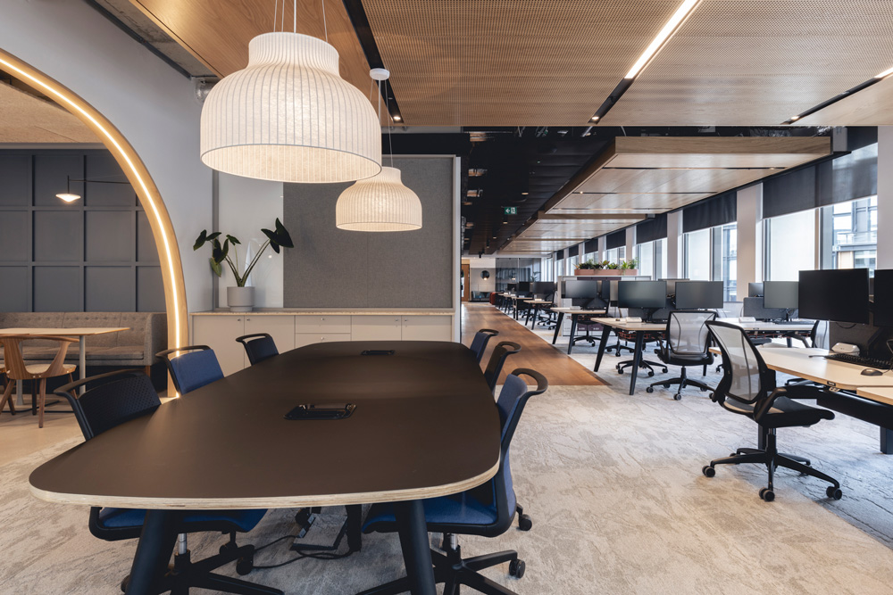 “Our client had a vision for a ‘third space’ which, as they conceptualised it, is an environment that sits between a typical corporate office space and a boutique hotel,” Dodsworth explains. “The design scheme reflects the best learnings from each end of the spectrum and sector specifics – the challenge of the brief was to carefully balance a supremely functional workplace whilst creating a sense of aspiration.”