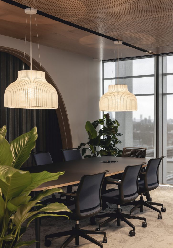 Smaller, intimate settings with soft seating are scattered thoughtfully around the more traditional desk spaces, with luxe finishes, soft lighting and warm timber continuing the hospitality feel. Surreal landscape photography by Tom Hegen was chosen to reflect the client’s vision, and touch on issues of sustainability. All wayfinding and branding implementation was designed by Ekho Studio, and live planting throughout the interior and terrace was integral to creating the atmosphere and wellbeing ethos AstraZeneca was keen to promote.