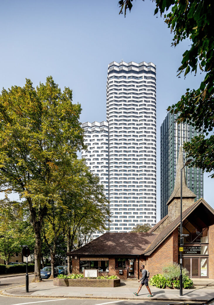 Inside, the material palette from interior designers Tigg+Coll is inspired by the architectural heritage of Croydon. Tied together by a strong mid-century feel, each level is given its own distinct identity, creating a series of homely and comfortable spaces that people want to inhabit.