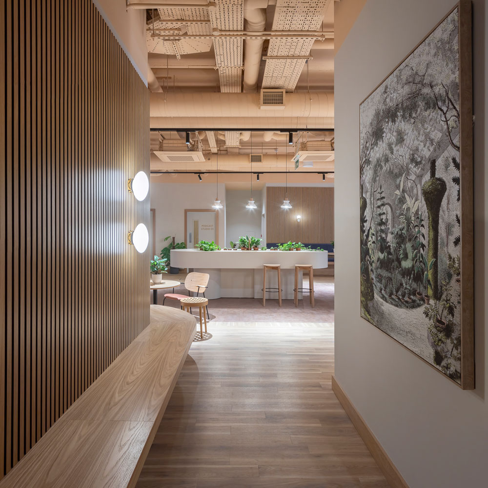 Two further floors in the lower levels of the building offer coworking and leisure suites. Each of these floors is again broken down into smaller activity focused spaces allowing people to use as they want, and occupy in groups or as individuals. “Breaking down larger spaces and giving purpose to each area is a key design tool,” adds Coll, “always considering how people can inhabit spaces together or alone, or alone together.”