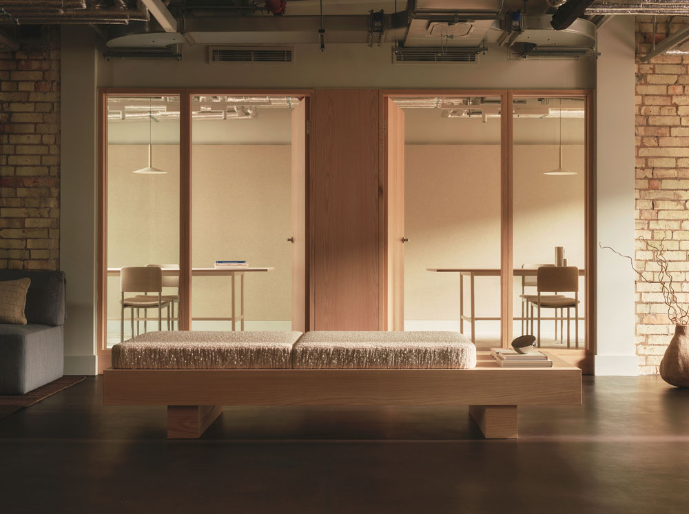 “Norton Folgate was a really exciting opportunity for us to create a series of compelling workspaces that celebrate the rich history of the area, whilst also being unquestionably forward facing,” Sweeney explains. “Adopting a multi-layered approach to the spaces, we created interiors that are layered with adaptable joinery, thoughtful details and striking art and furniture, giving each space its own distinct identity and character.”