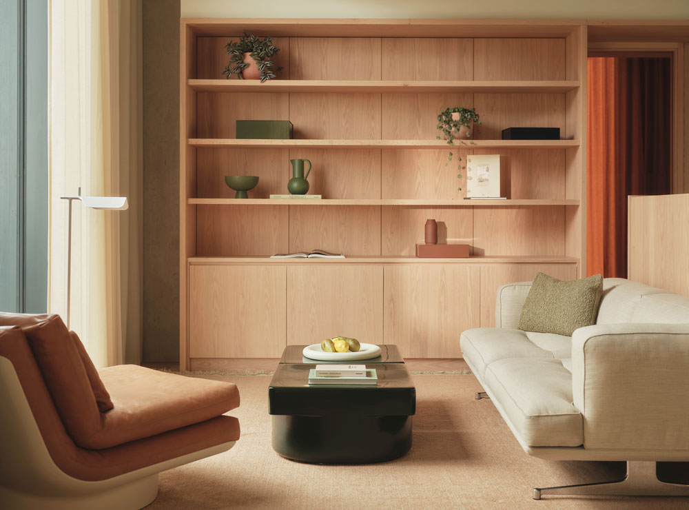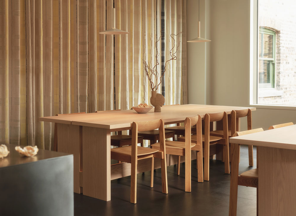 As well as spotlighting the enduring importance of art and craftsmanship, Universal also placed sustainability and longevity at the heart of the concept. Significant, long-lasting joinery pieces were therefore treated as a new permanent layer to the fabric of the buildings, rather than just pieces of furniture. “Developed in collaboration with Benchmark and created with deconstruction in mind, we foregrounded the details, connections and fixings to ensure that the pieces can be adapted for a second life,” outlines Sweeney. “Timber species were selected to have the lowest impact on the environment, and we also carefully considered the finishing – opting to oil the timber rather than using any lacquers makes future repair and maintenance much easier.”