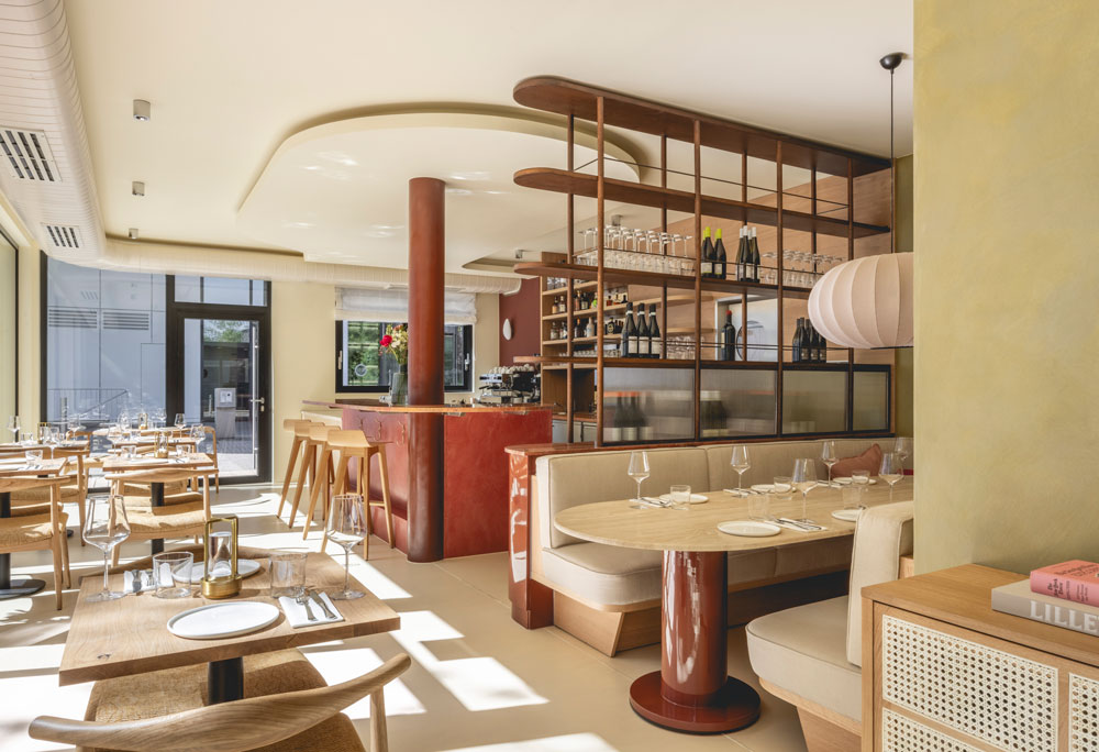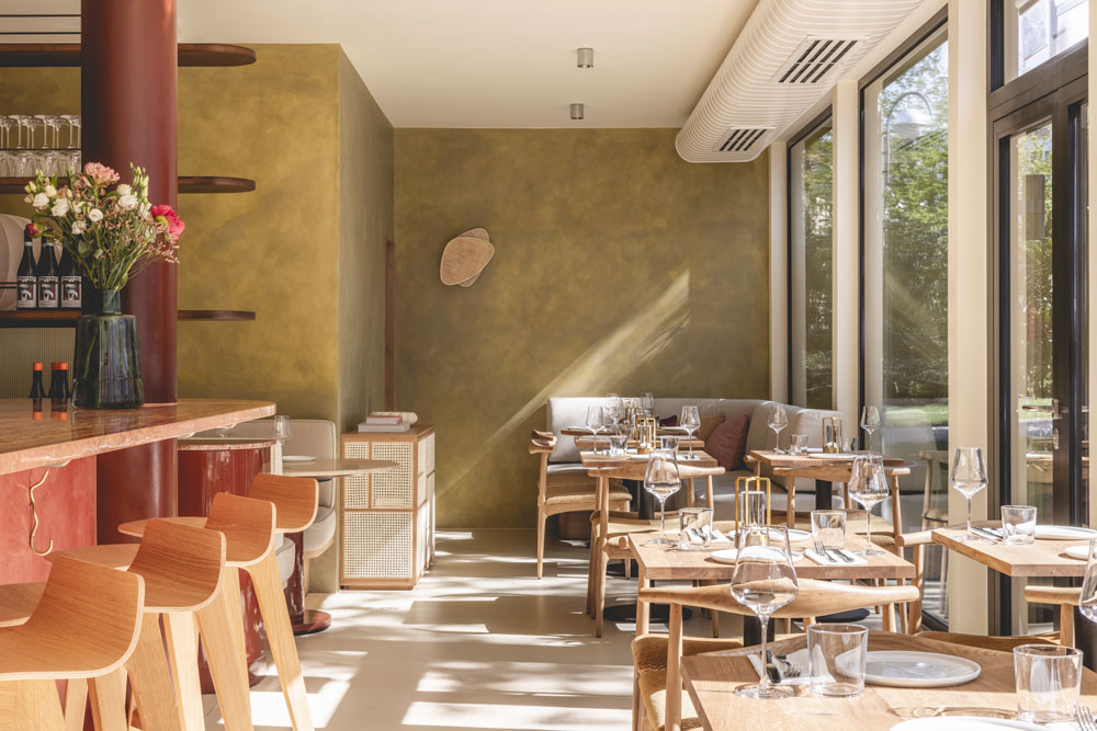 Aiming to channel the eclectic eateries of Tulum and California, the design team envisioned The Nest as a transportive hideaway for Frankfurt locals, nestled in the heart of the city. A warm, neutral palette of terracotta Tadelakt plaster and timber detailing is brightened by a red gloss bar, which acts as a luxurious, inviting focal point at the centre of the space. The restaurant and bar are flooded by ample natural light from the generous tableside windows, while an ambient glow emanates from pendant lighting ready to transition the space from morning coffee to an evening of dinner and digestifs.