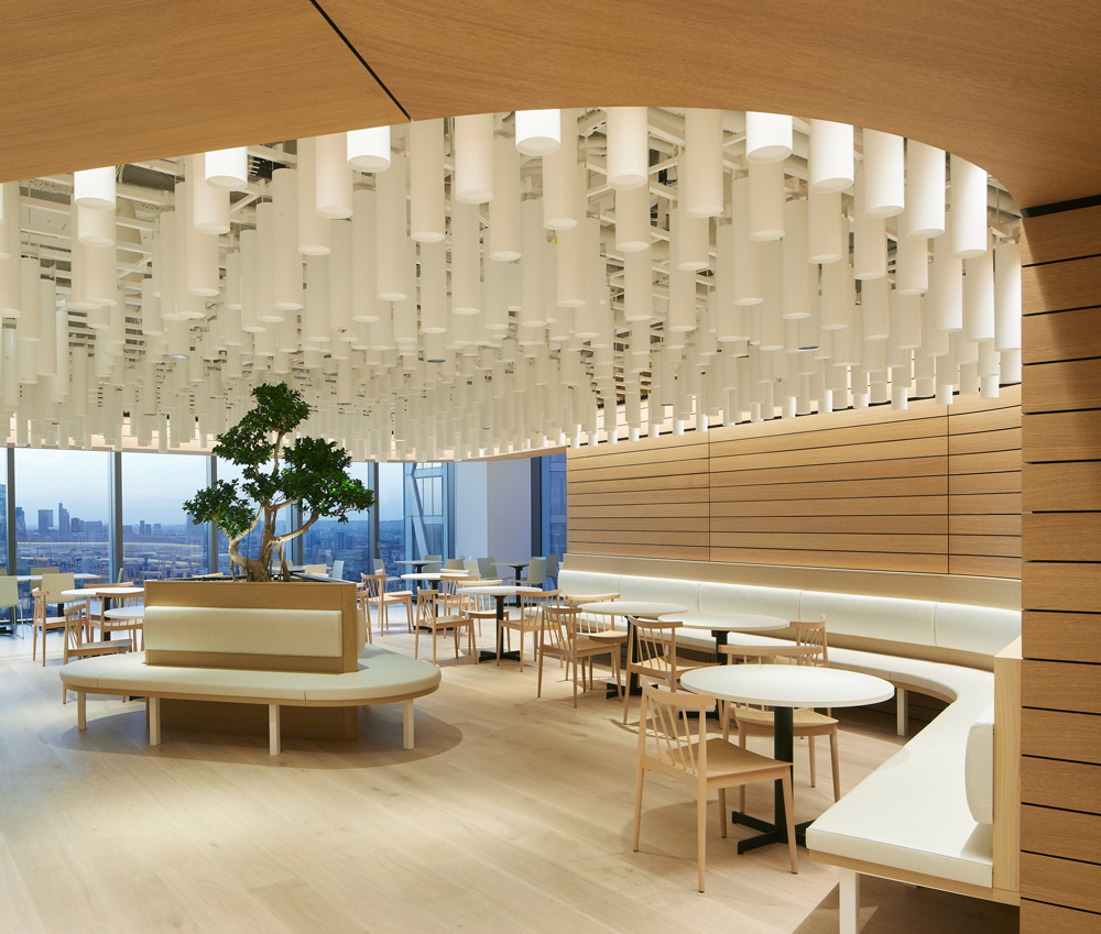 Designed by Perkins&Will, EBRD’s London HQ is not just for employees but chosen by them. In 2019, employees of the European Bank for Reconstruction and Development (EBRD) were invited to view three proposed designs for the company’s new HQ, and the winning entry by Perkins&Will positioned inclusivity as integral to its philosophy. Amenities include a double height auditorium lined with walnut panels featuring a frieze depicting an abstracted image of a forest. A multifunctional space, it’s used for presentations, panel discussions and as a cinema. Adjoining this is an “ante space”: a more informal area for staff to gather, which is flexible enough to host exhibitions. There’s a boardroom above this; next to it is a large space boasting dual-functional planters on castors, incorporating benches that can be moved to the edges of the room to create an entirely open-plan space.
