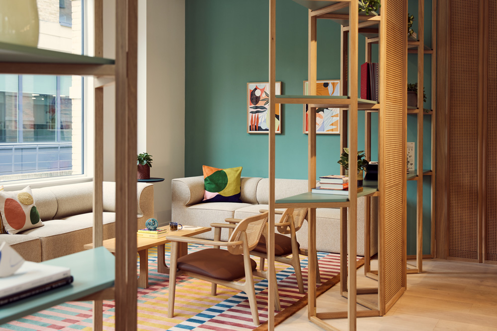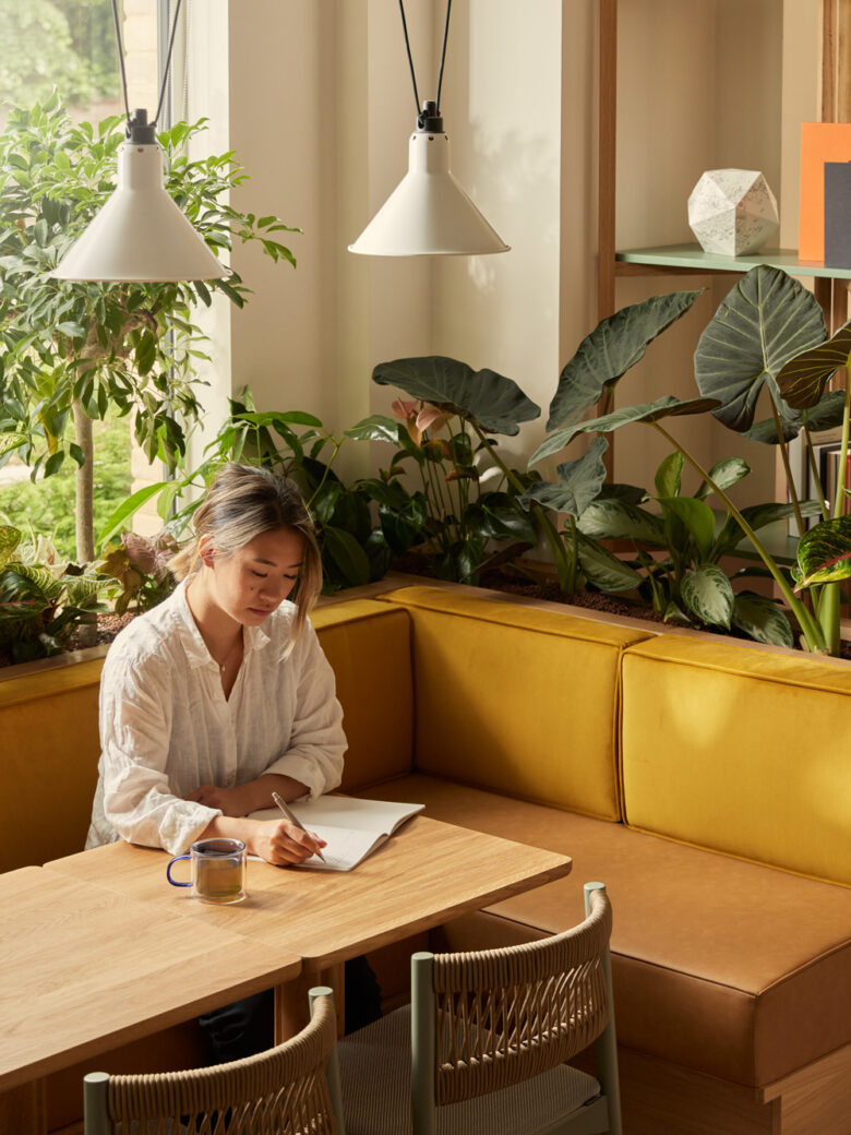 Designed entirely by Fora’s inhouse team for the first time, the design pays homage to Cambridge’s architectural vernacular and cultural history, with warm sandy tones and natural tactile textiles throughout. On the top floor, a verdant ‘Garden Room’ is inspired by the nearby Cambridge University Botanic Gardens, with an abundance of living plants and pockets of biophilia creating a calming connection to nature. Outside, a wrap-around terrace offers sweeping views across the city, and a green roof, fitted with bug hotels, encourages biodiversity.