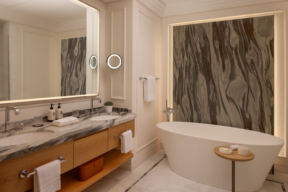 Designed by Wimberly Interiors, Four Seasons Resort and Residences at The Pearl-Qatar draws inspiration from the surrounding Qatari landscape.