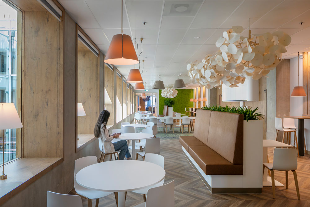 Taking inspiration from the rise of more agile and hybrid working following the pandemic, Hassell sought to challenge the typically formal, traditional approach for legal practices at 280 Bishopsgate, London. The result is a visually striking, employee-led HQ that aptly demonstrates the growing ‘hotelisation’ of the workplace, weaving together fully connected working zones, a rooftop entertainment terrace and biophilic additions like an abundance of natural light and indoor plants.