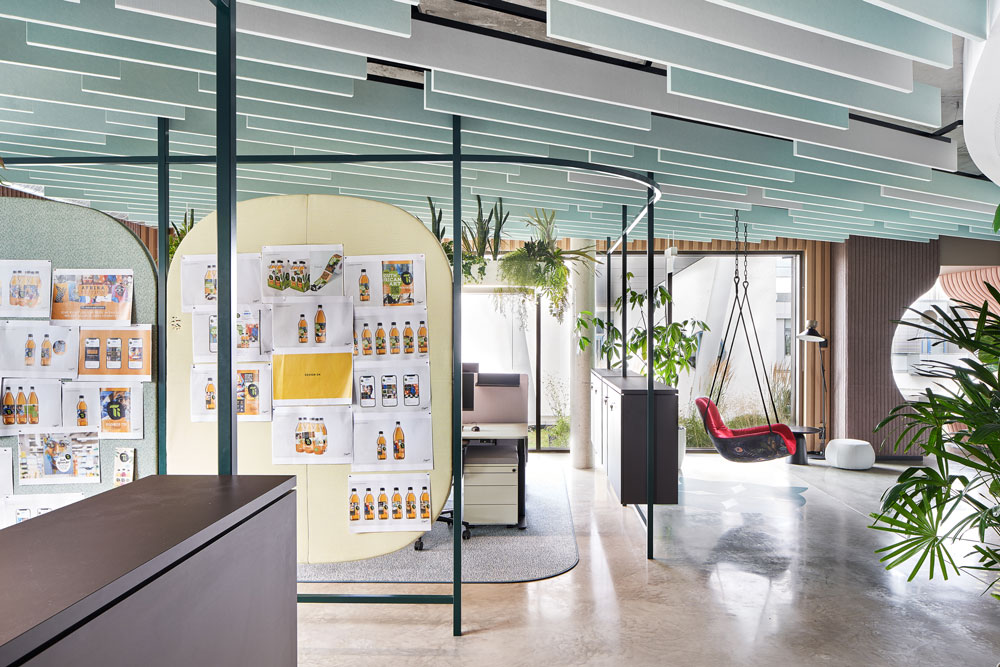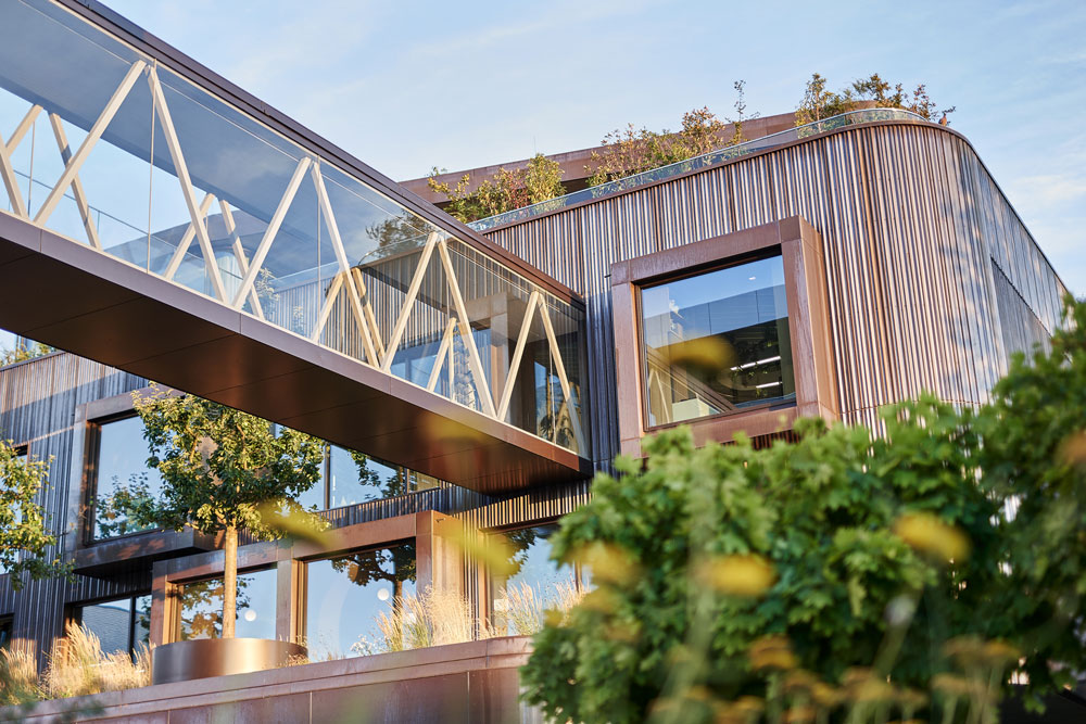 The vision of multidisciplinary design studio Ippolito Fleitz Group, visitors enter The Treehouse (the new HQ for German soft drink brand, Bionade) via an array of glass-walled walkways. Leading through the neighbouring trees to the central building within, these walkways are clad with a copper façade complementing the muted, organic palette of the woods, while inside, a contemporary, open-plan office awaits with flexible configurations baked in, offering a collaborative, colourful workspace that takes cues from the surrounding landscape.