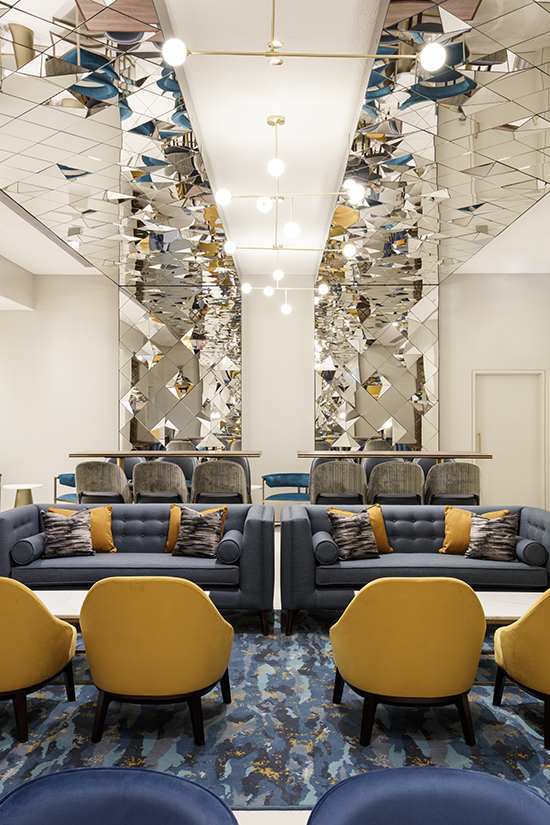 ‘We worked closely with Nulty Bespoke to create the drumstick lights, which sit above the check-in area. They worked with us on all of the lighting design here – so the lights above the central bar can change colour during happy hour and can also rotate, so it looks like an actual disc is spinning.’