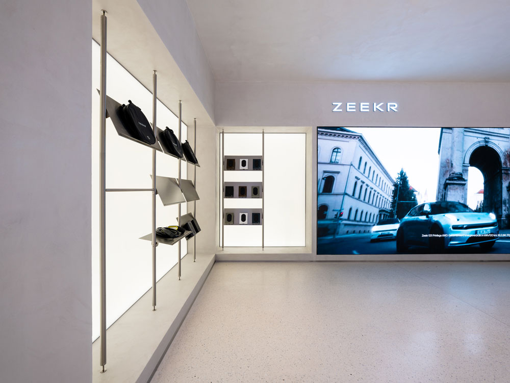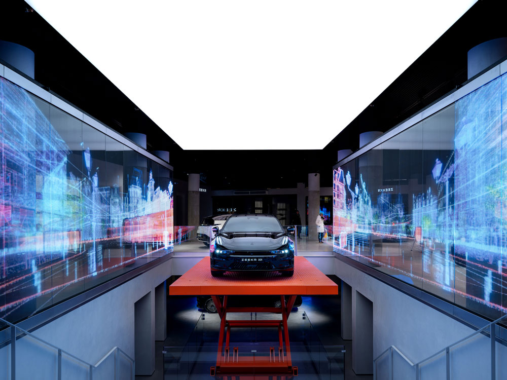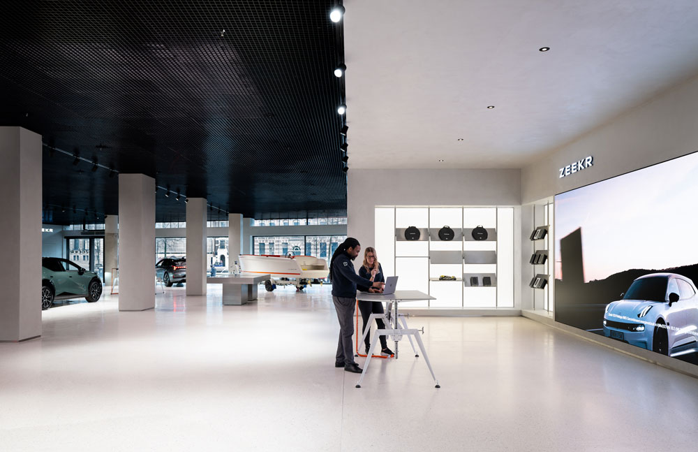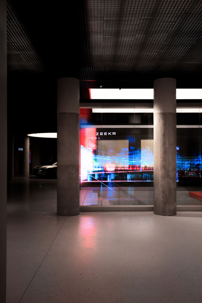 Repurposing a former department store in Amsterdam, creative studio Unknown Works unveils a digital-led concept store for electric vehicle brand Zeekr.