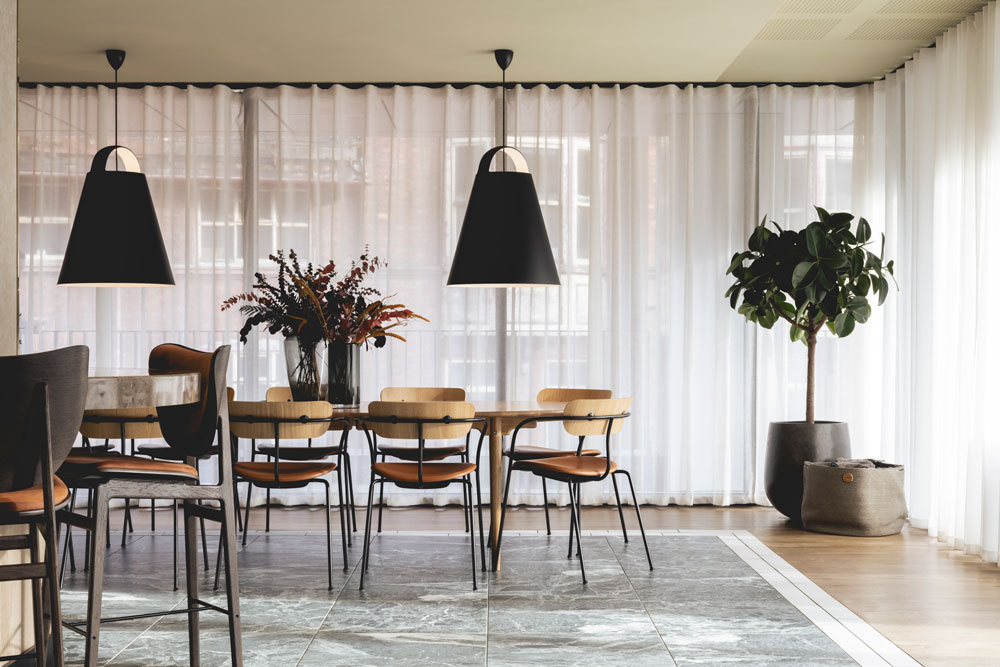 For JOLIE, the design of the communal space at The Stile goes beyond the traditional expectations of residential providers. “Particularly post-pandemic, asset owners have to be more open-minded about their competition,” says Rousell, explaining how provision for young residents working from home is no longer a ‘nice to have’. “You’re not competing with other residential blocks anymore, it’s hotel lobbies and coffee shops – those ‘home from home’ spaces that provide a comfortable but professional-looking environment.” This, she says, is why the design approach focuses on the sensory experience it provides for the building’s residents. “A successful interior environment changes how a user feels or behaves – it’s a sympathy of the senses and, as designers, we’re curating this experience through touch, acoustics, fragrance or lighting. Our priority is to think about how design can genuinely elevate people’s lives.”