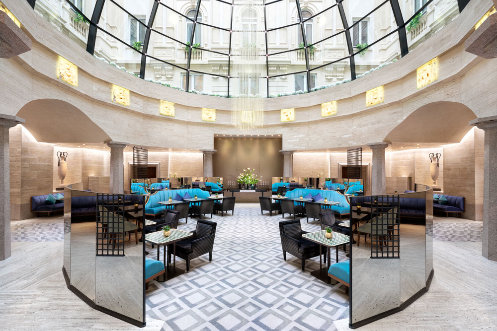Close to the Gothic Duomo di Milano amid avenues of high-end fashion boutiques, this palazzo, which was first occupied by a hotel before being leased by the Bocconi brothers for their emporium, returned to its hotel roots in 2003 when it opened following a full restoration as Italy’s first Hyatt hotel.