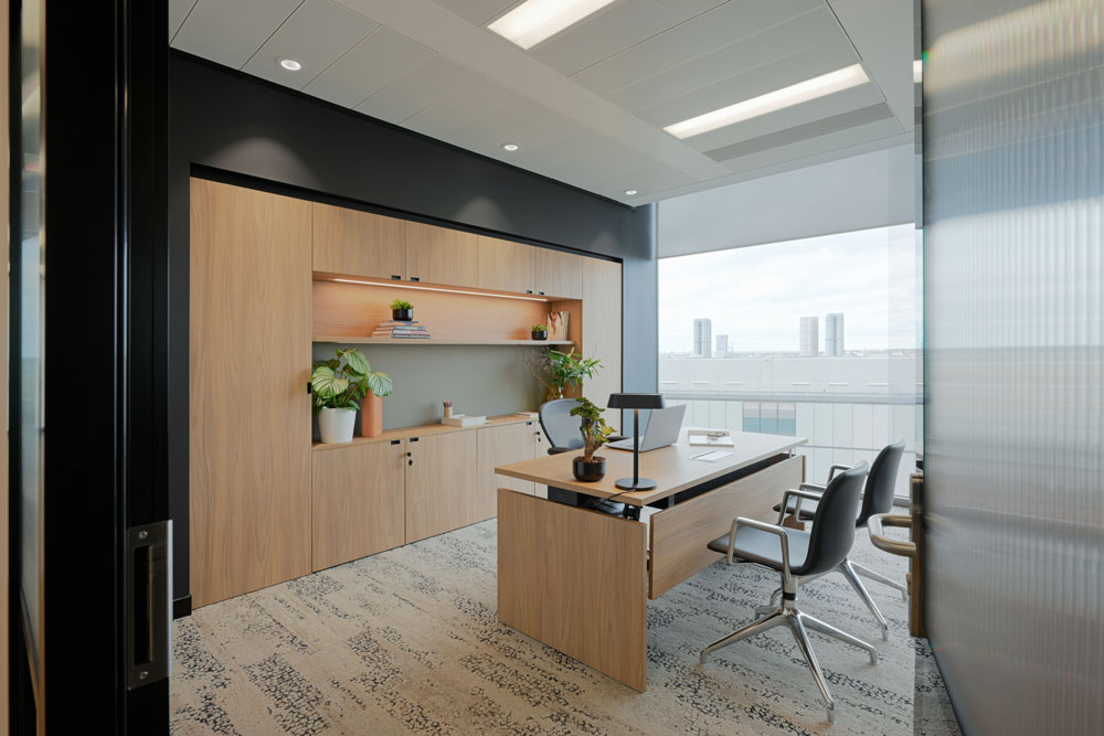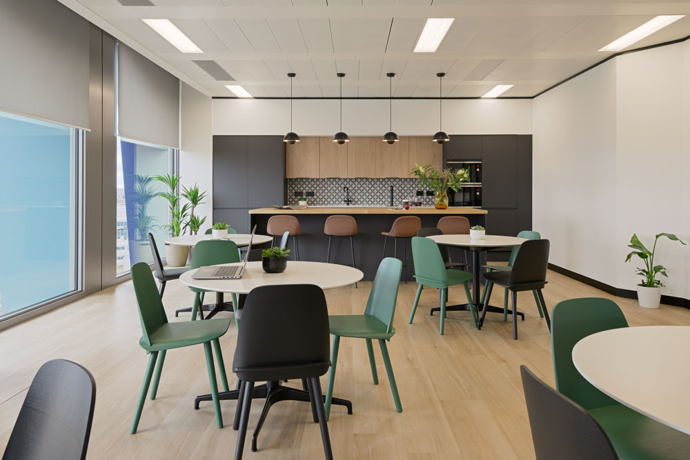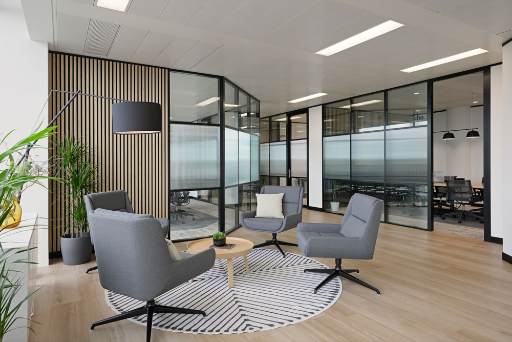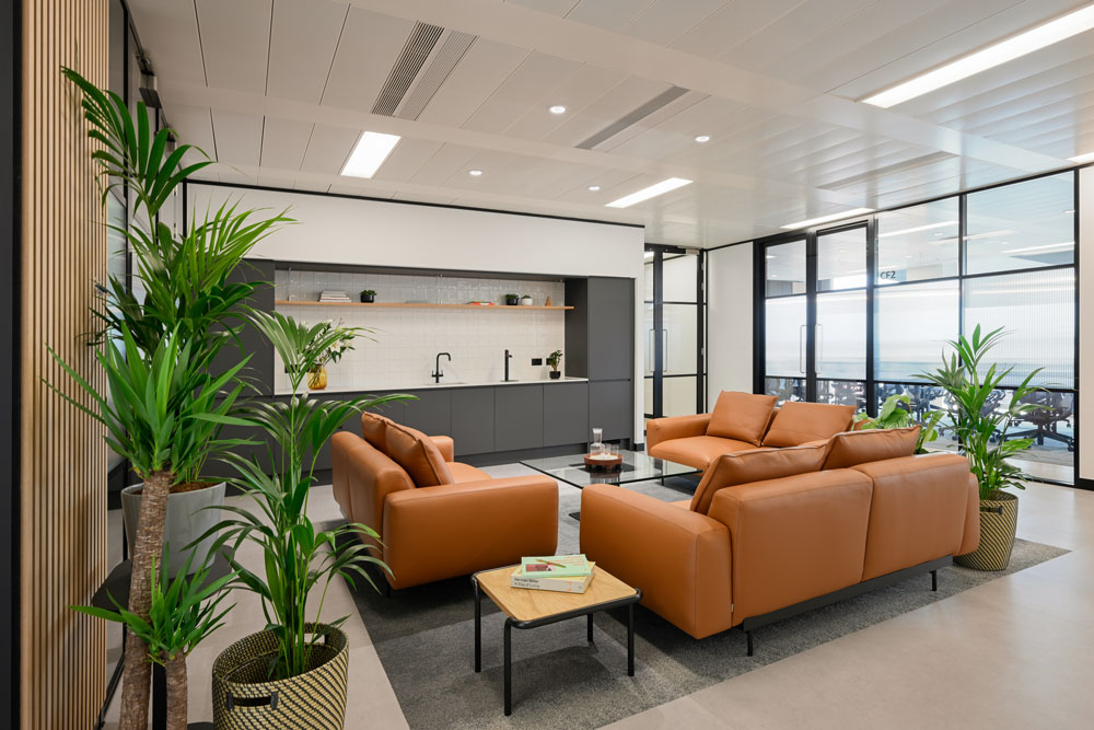 Over in the managing director’s office, Concept4 selected Knoll’s private office solutions to target both function and style. These solutions include a sleek, modern desk with an adjustable height for ergonomic comfort, as well as a leather-upholstered Outline Sofa from Muuto, creating a distinct, refined aesthetic as well as an added layer of comfort. Soft lounge seating by NaughtOne – such as the Always Lounge Chair, Hush Sofa and Ever Sofa – were also positioned throughout shared spaces such as the shared kitchen diner onsite, offering staff a comfortable place to take a break.