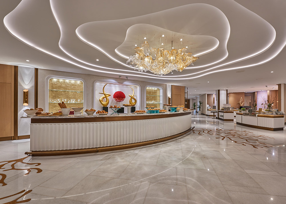 The Imperial Club Lounge at the Atlantis Palm is a luxury VIP getaway, where convenience, comfort, style and personalised service are key. The two floors and 33,250 sq ft lounge offer a terrace over the uninterrupted views of the Arabian Gulf, while AAID’s soft seductive ambiance pays homage to the underwater world.
