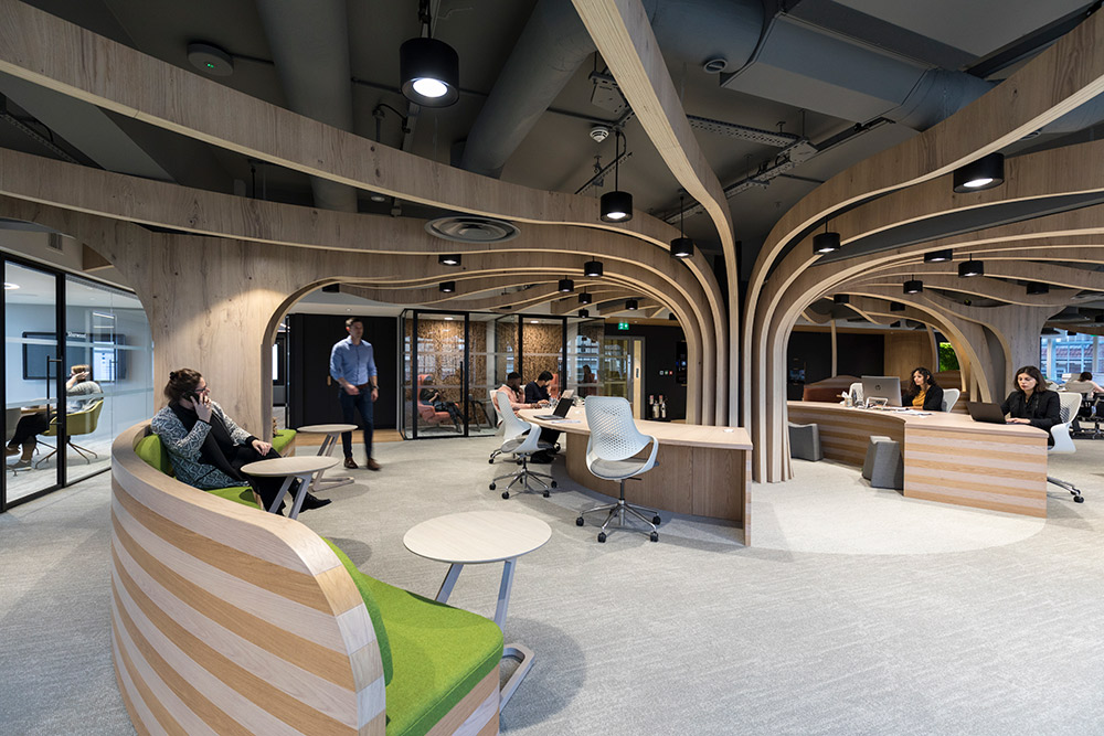Morgan Sindall Group wanted to provide their staff with new ways of working through the creation of a unique environment that inspires creativity, supports collaborative thinking, includes biophilia but above all creates a destination workplace that lives and breathes their cultural values.