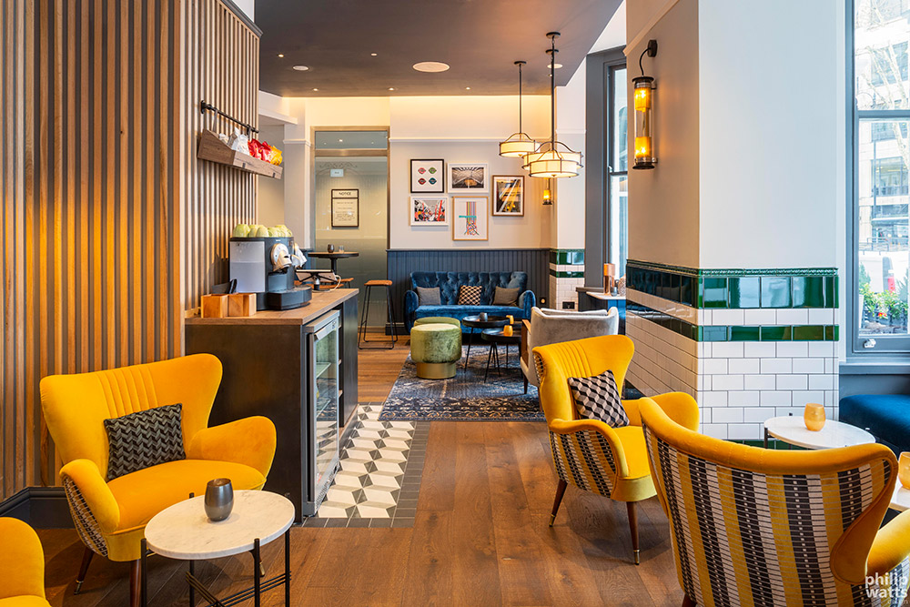 Philip Watts Design refurbed a previous Best Western into an Ibis Styles, Accor, in Gloucester Road. Ibis Styles is an economy brand promoting creativity and localised design. The interior has subtle suggestions of the London Underground, through the ages, reflecting its location through a choice of materials, colours and surfaces.