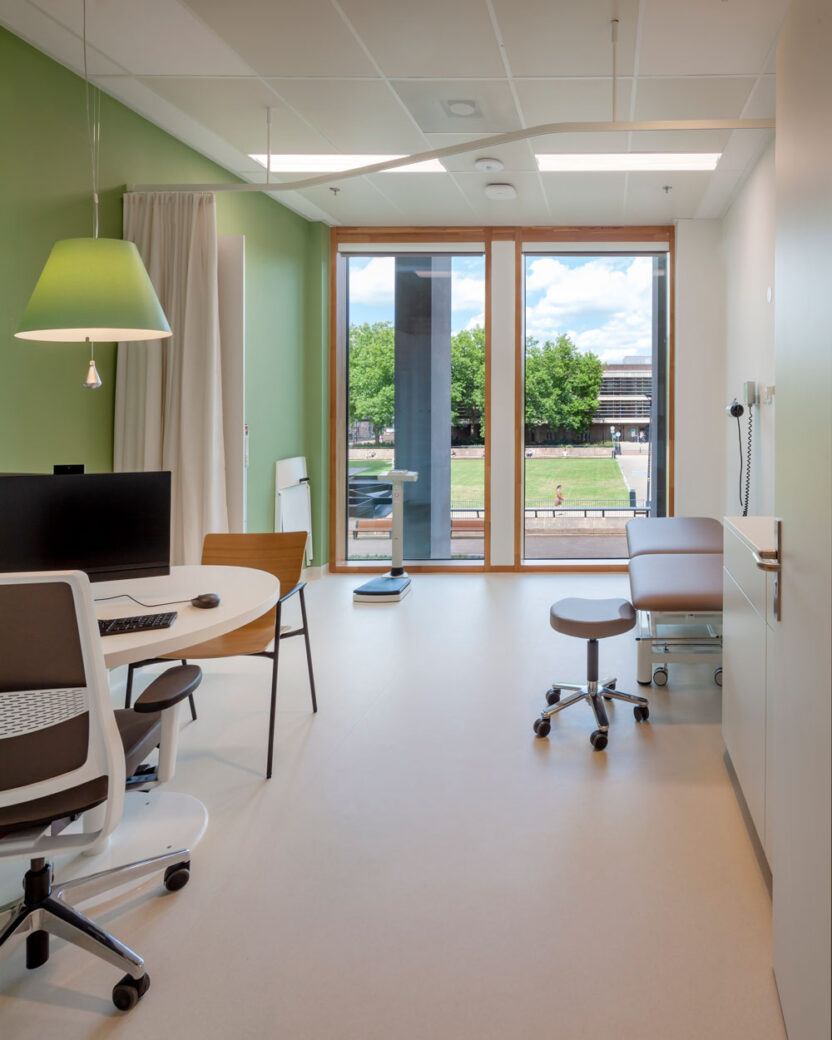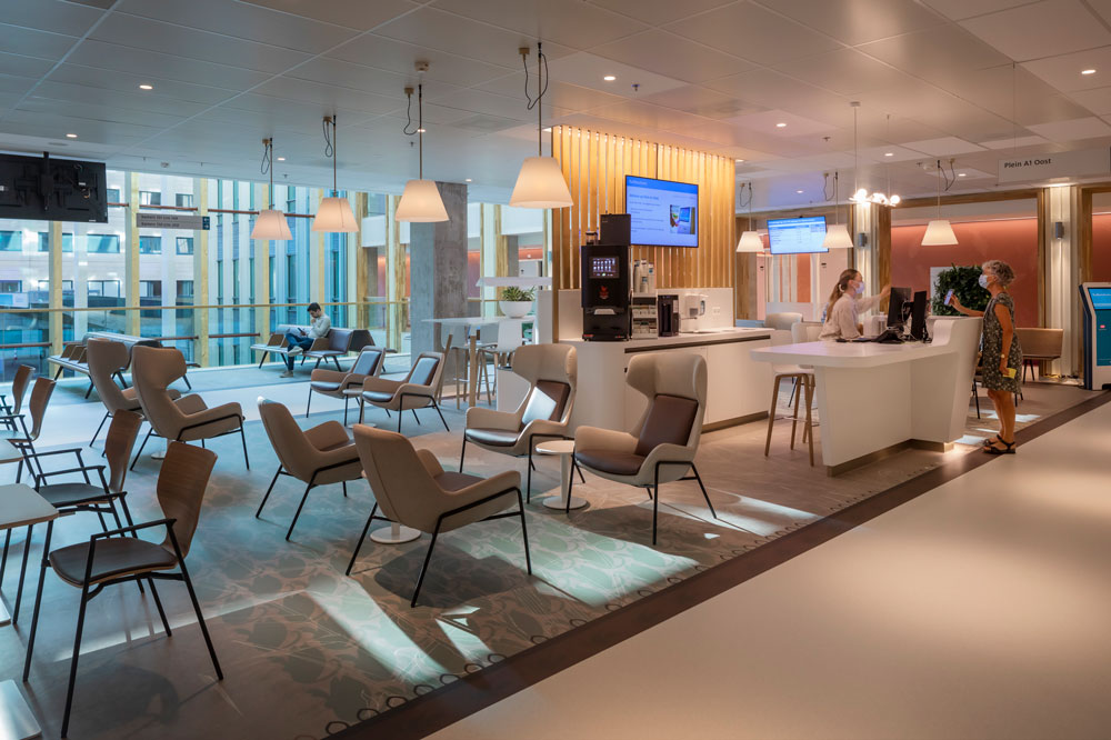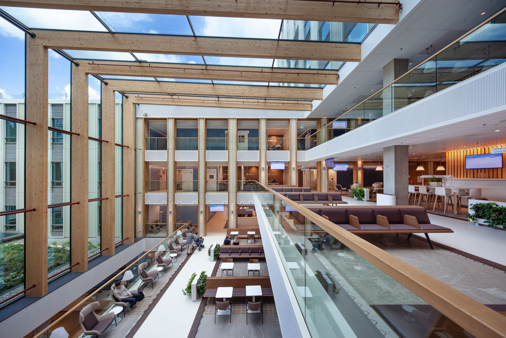 In order to encourage a more collaborative environment for doctors, nurses and students, in place of traditional departments are 11 shared spaces for consultations, workshops and studying in the staff departments. Welcoming, well-equipped lounges are also positioned beside departments and throughout the medical centre for easy access, enabling well-earned breaks for on-site staff.