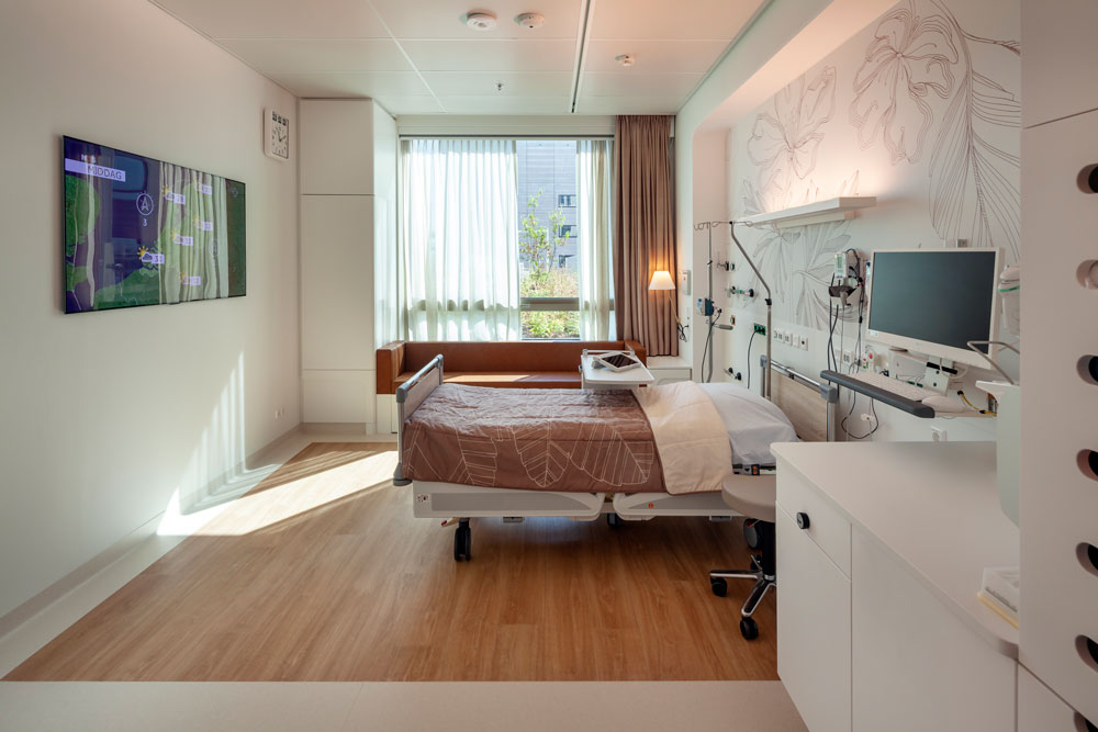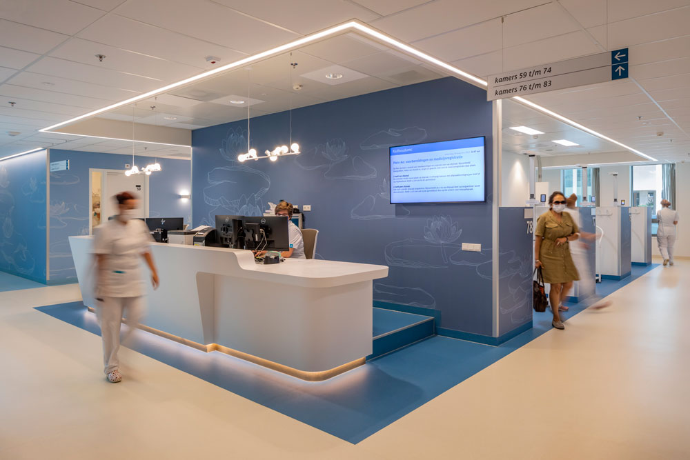 Taking on the full-scale redesign of Radboudumc’s 46,000 sqm main building, Dordrecht-based firm EGM Architects were informed from the outset by the hospital’s three core values: sustainable collaboration, personalised care and public health. A focus on the important, interdependent relationship between nature and human wellbeing formed the basis of EGM’s design concept for the newly refurbished hospital, and as a result, the architects strove to bring as much of the outdoors into patient rooms and communal spaces as possible.