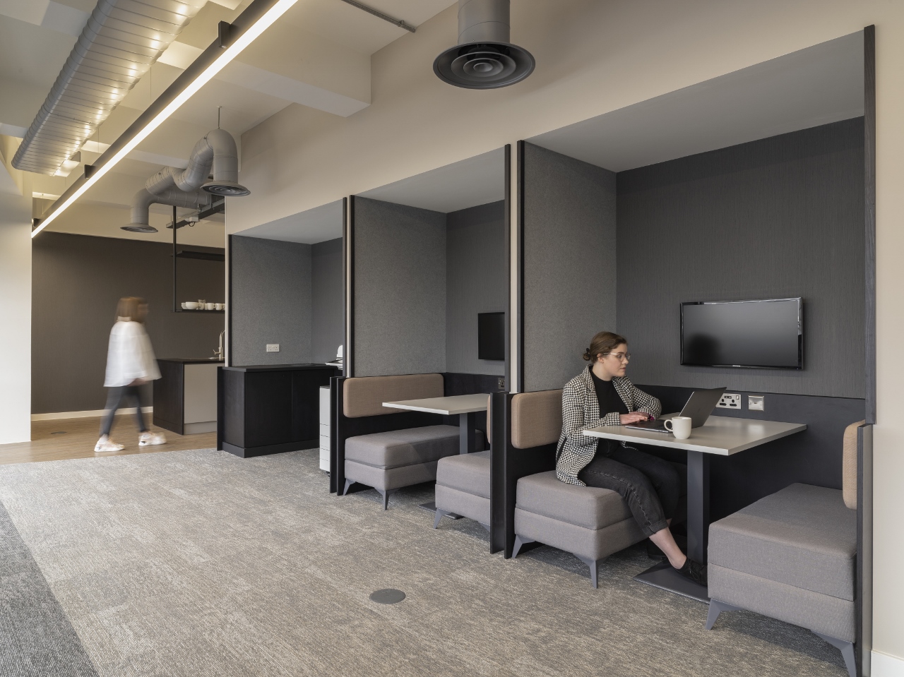 ‘The finished environment is exactly what we were looking for: warm and welcoming for both our team and our clients and with a seamless spatial flow,’ adds Gary Davison, Partner at Tosca Debt Capital. ‘The look is crisp and sophisticated and, most importantly, offers us as a business the future-proofed flexibility we need to move forward.’