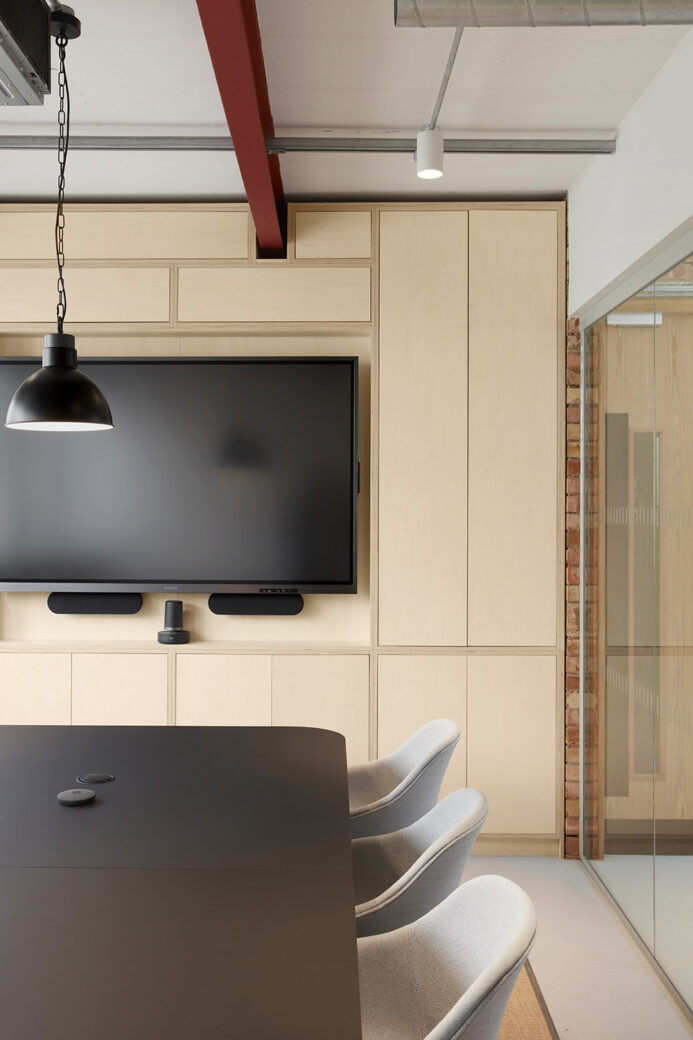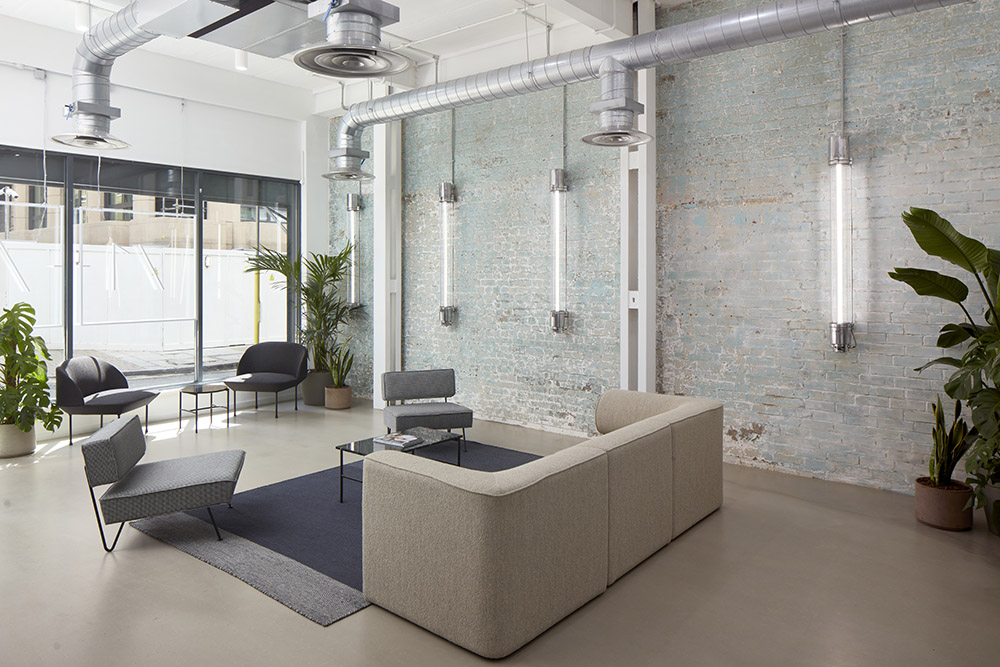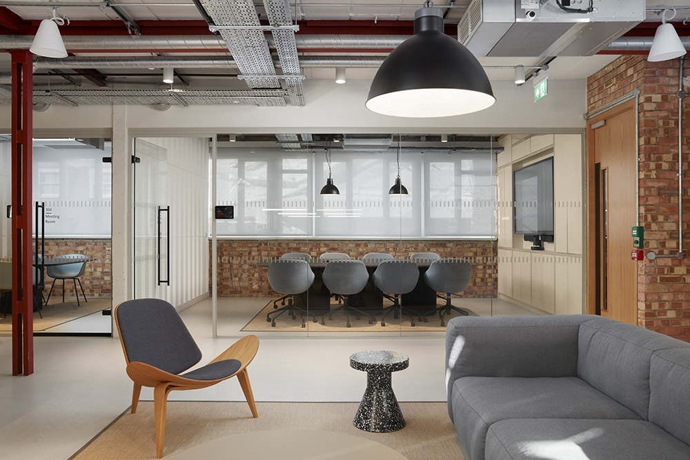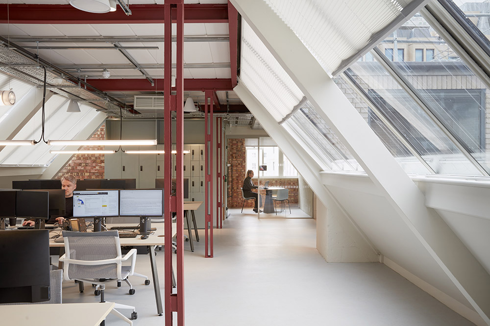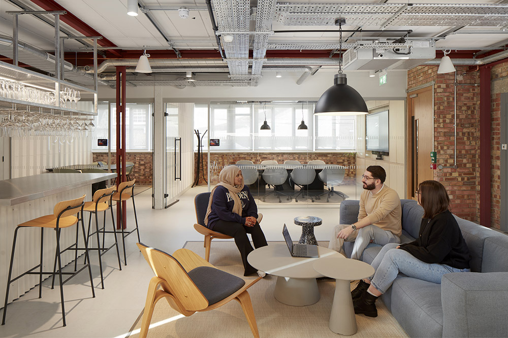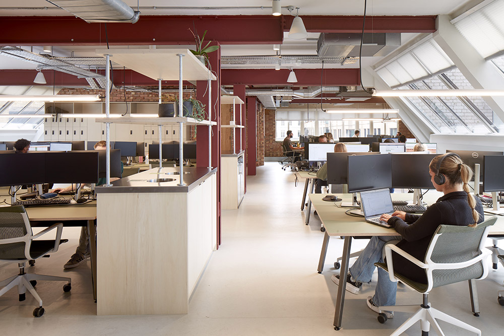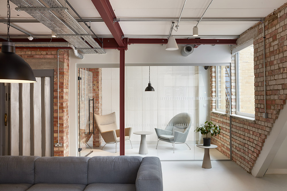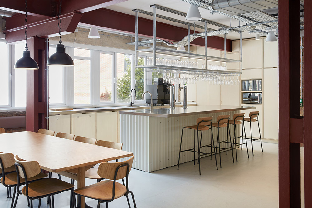 Spacelab retained as much of the existing fabric as possible, exposing brickwork and recycling concrete blocks to define new zones. Pipework and ducting have been left uncovered to minimise the use of plasterboard, which not only celebrates the urban loft style of the building but aligns with the studio’s commitment to a circular economy.