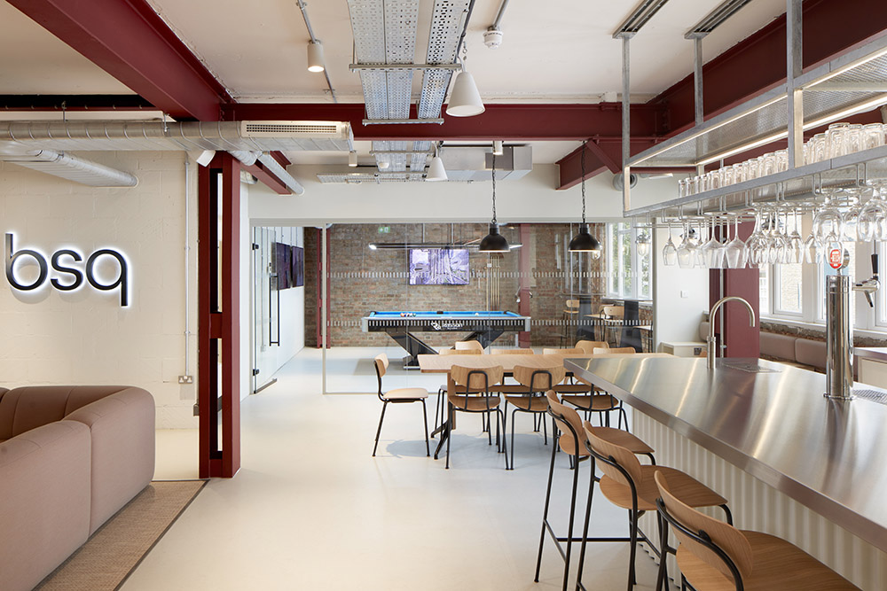 Previously located in the bustling Covent Garden, intelligent service provider BSQ has grasped the opportunity to lease a unit on a quieter street. In its new workplace, the company asked for a contemporary and flexible space that fostered organic opportunities for collaboration, as well as an elevated entrance experience for employees and their creative partners.