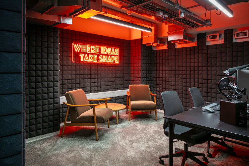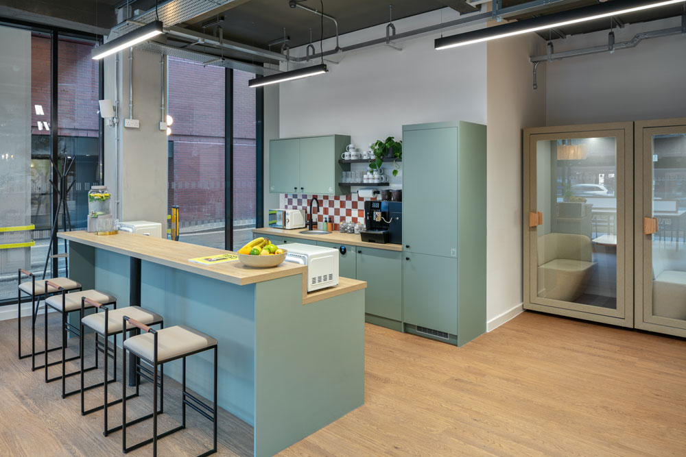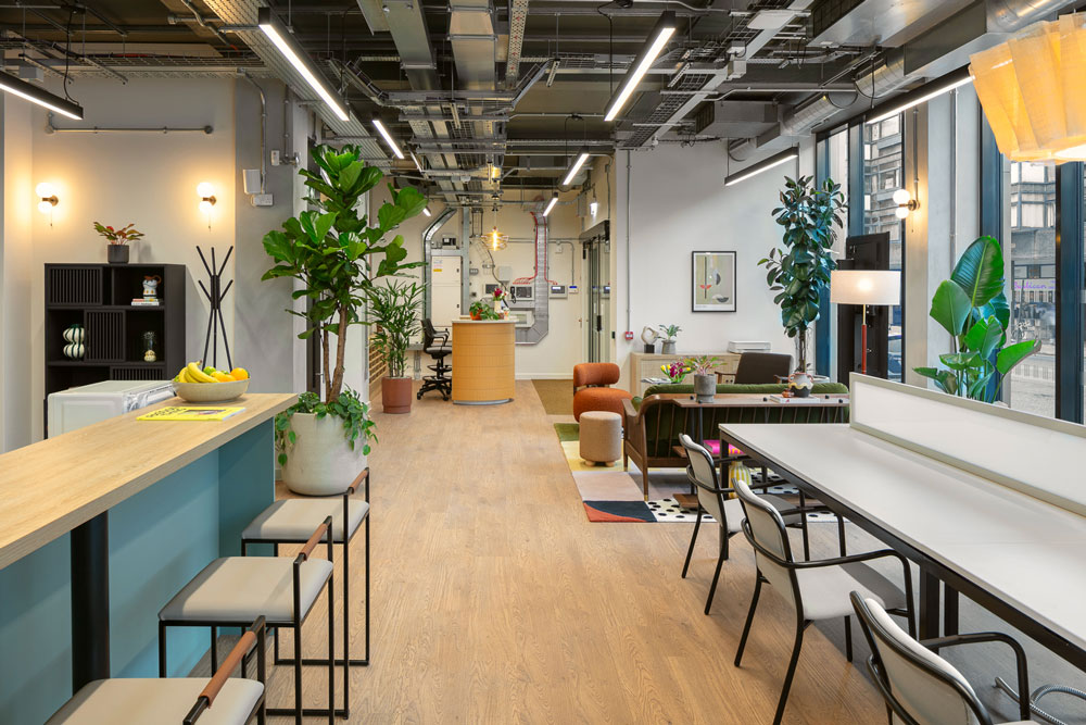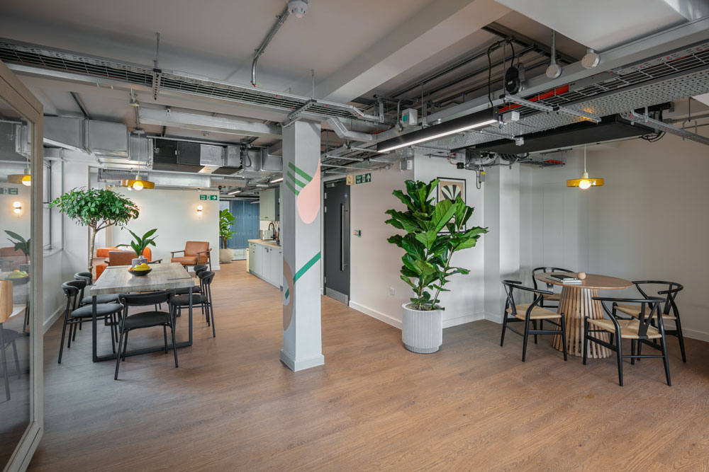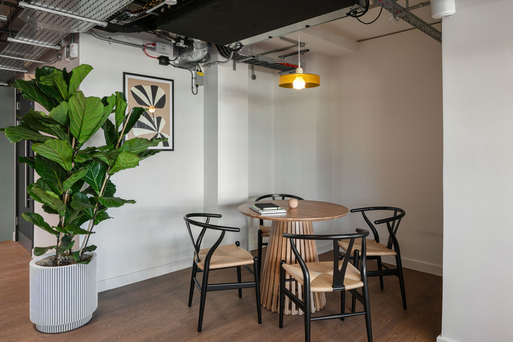 In the four meeting rooms, which can accommodate between four and ten people, users will find built-in video conferencing technology and fast internet access, while Amplify – the inhouse podcast studio – offers a space to kickstart a new audio endeavour, and is fully equipped with a camera, tripod, and microphones. Throughout the shared lounges, seating areas and coworking spaces, meticulously hand-picked furniture is joined by a colourful, curated selection of printed artwork, including hand painted murals by Sarah Sebastian.
