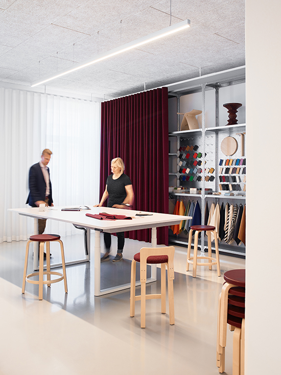 Overall, the space is incredibly flexible and human-centred, offering a balance of collaborative spaces and private zones where Artek’s people, their clients and their dealer network (the biggest part of the business here in Finland) can retreat and concentrate. ‘We’ve found that more and more clients are now coming to see us – for breakfasts and for evening events – which is just great!’ Marianne enthuses. ‘They are really, really using this space.’