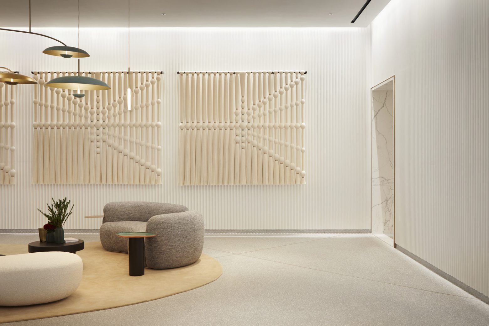 Squire & Partners used a family of three design languages encompassing palettes of light, medium and dark bronze metal partnered with light and dark pre-cast concrete across The Broadway. Inside, the offices and retail unit owners will be greeted with a Cat A fit-out when they arrive, along with a lobby area containing furniture, fixtures and equipment designed by Nainoa.