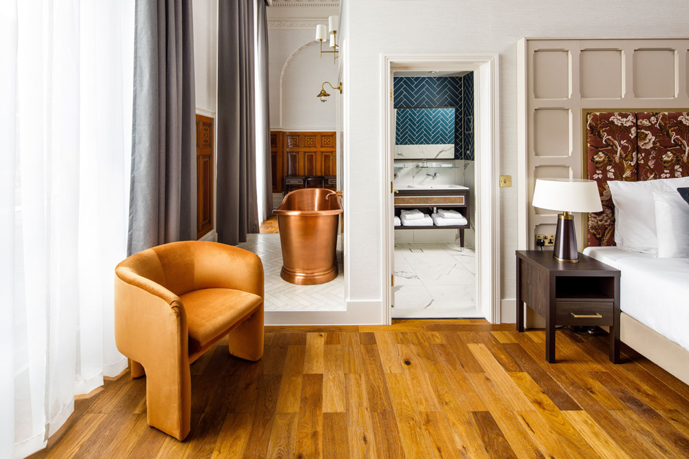 “Turning the hotel from an office designed over 100 years ago into a hotel which needed to meet the hotel brand’s requirements along with that of heritage was… difficult,” says Grayland Interior Design’s Jenny Denton. Doors, for example, were listed yet didn’t comply with fire or noise requirements, so each one had to be refurbished. “This was also the case with heating and cooling, floor compartmentation for fire, structural requirements, repairs to roofs, the list is endless.”
