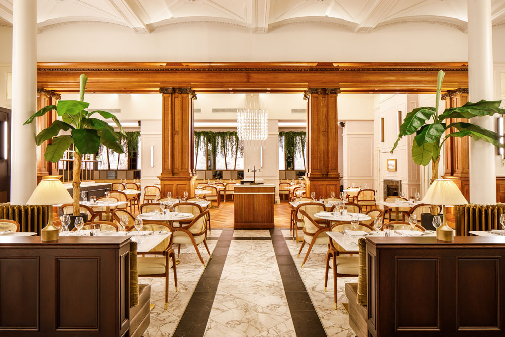 Purchased by the Fragrance Group in 2016, The Municipal now sits as part of Accor’s boutique MGallery arm, post a £60m renovation that includes a new- build bronze extension that houses a pool and spa. Working with Historic England and Liverpool City Council’s heritage team over the four-year refurbishment, the design teams carefully peeled back the layers of the more modern fit-outs (picture rows of plastic desks and garish purple and white carpet tiles) to reveal original Grade II* listed features.