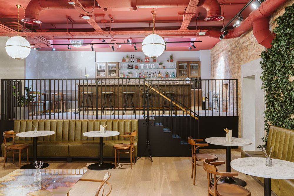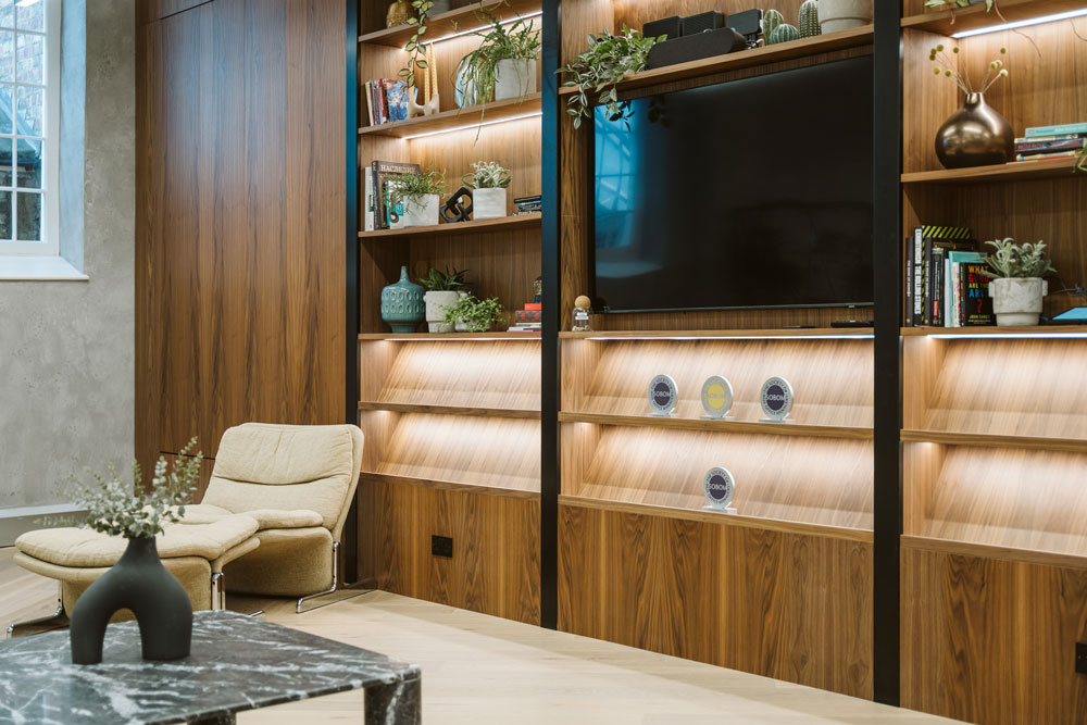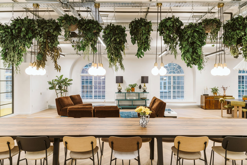 As TodayTix hosts regular launch events, parties and a range of live performances, Thirdway paid special attention to a mezzanine space, installing a bar, disco balls and climbing ivy across exposed brickwork. This laidback, speakeasy atmosphere, has proved to be the perfect setting for the brand’s ‘town hall’ events and larger meetings, and has also been instrumental in aiding the London team’s collaboration with their colleagues over in New York. However, after executing their original design brief, Thirdway later returned to the former church building to implement more fixed desking, as the fast-growing company was expanding in size.