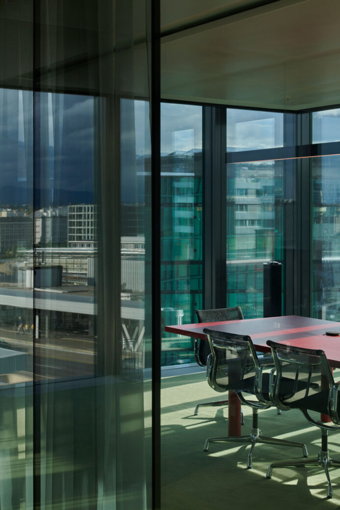 Occupying the sixth floor of Zürich’s famous Prime Tower (once the tallest building in Switzerland), Studio Luiz Albisser’s latest project transforms a 650 sqm office space with a creative yet functional use of colour. Tasked with creating a modern, flexible workplace for music corporation Universal Music Switzerland, the Swiss design studio (based in the nearby city of Basel) began with an entirely open-plan space in a vibrant neighbourhood known for its business, nightlife and cultural hotspots. In need of a practical headquarters that still felt like an inspiring, creative hub for employees, the resulting design concept centred around creating three distinctive spaces: The Relaxation Zone, The Collaboration Zone and The Focus Zone.