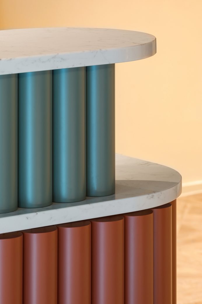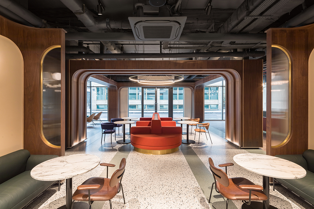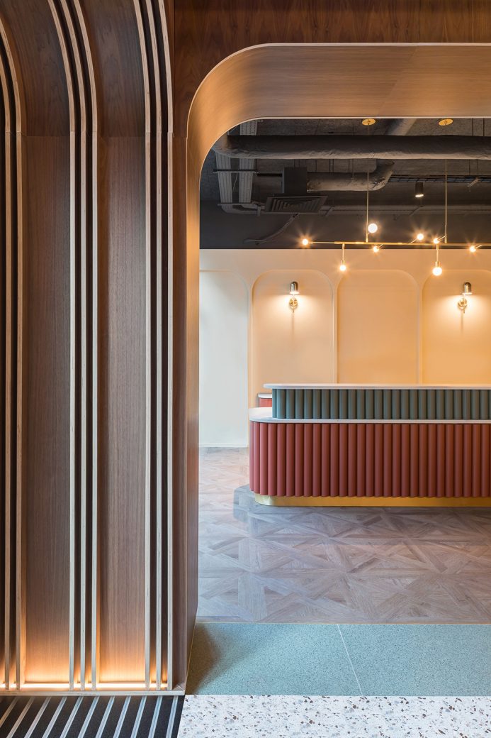 ‘We wanted the space to feel thematically relevant to its immediate context and our research led us to the local siting of Shakespeare’s theatre company (on Curtain Road) and its first permanent home in 1597, which saw early performances of some of Shakespeare’s most iconic plays, such as Romeo & Juliet and Henry IV parts I and II,’ David Tigg and Rachel Coll, the studio’s founders, tell us. ‘This inspiration led to an exploration of theatre design through the ages, focusing on the Art Deco inspired theatre foyers of the 1920s, through to the glamour of 1950s cinema and theatre.’