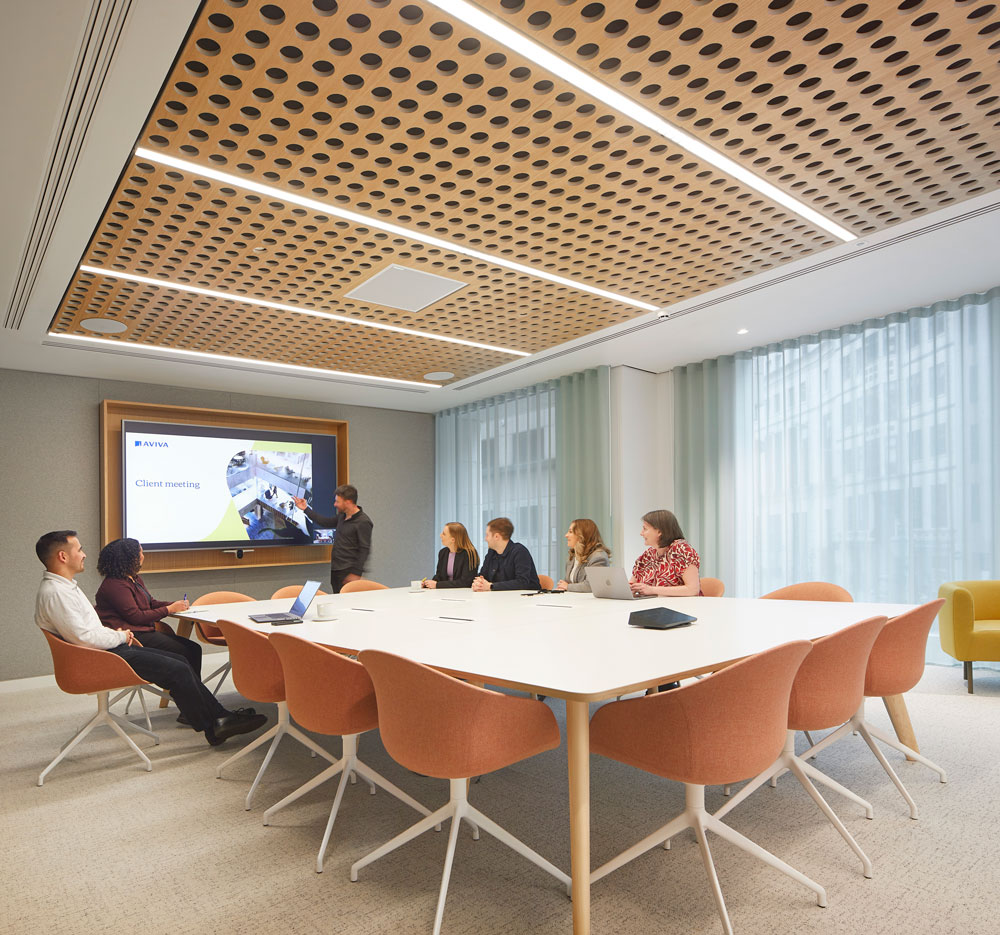 tp bennett worked closely with the client to craft a bespoke ‘Aviva Fitout Sustainability Strategy’ which aligns the design brief with Aviva’s ESG programme, including their climate-focused targets. This strategy set 105 new industry-leading environmental and social metrics over the project’s design, construction and operational phases, and was produced as a repeatable process for consistent use across Aviva’s portfolio. Working closely with the client as well as Hilson Moran, 24 Ltd, Overbury and multiple suppliers, the project achievements included optimisation of operational and embodied carbon, responsible and circular materials, health and wellness, social value and equality, diversity and inclusivity.