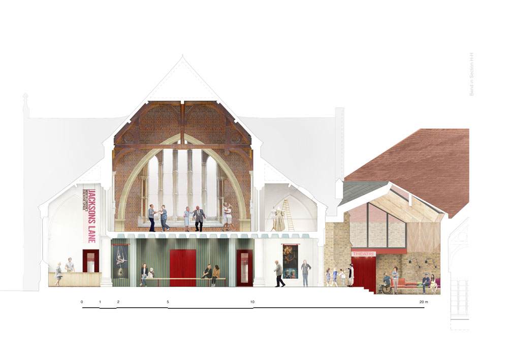 Jacksons Lane has been part of Highgate’s local community since the 1980s. Housed in a Grade II listed former church in North London, the building has seen a number of changes in use since its completion in 1905 and is now an important part of the cultural fabric of the area. Now, as the UK’s leading supporter of contemporary circus, Jacksons Lane comprises a 170-capacity auditorium, rehearsal studios for performers, and a variety of spaces for digital content creation and production, the building is at the heart of a community ethos to promote physical activity, social connection and togetherness.
